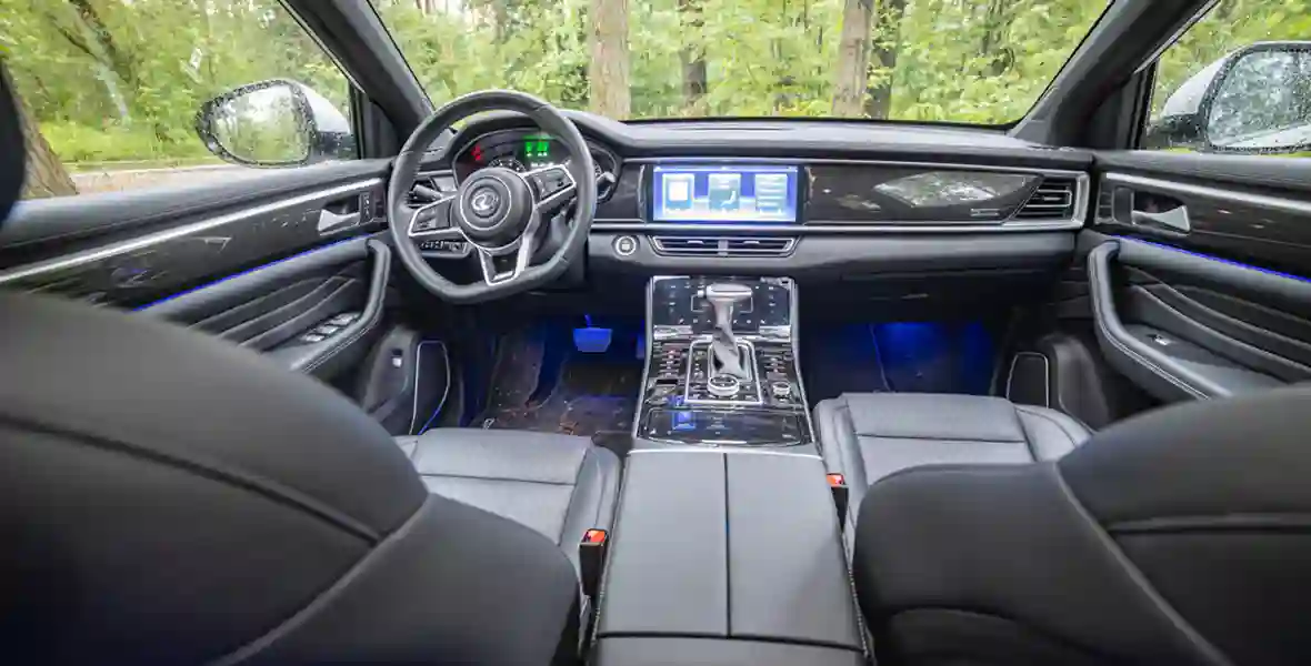 Стиль DFSK ix7 во многом продиктован его функционалом. Машины, ориентированные на езду всемером, нередко обретают некоторые черты минивэнов. С «семеркой» именно такой случай. Несмотря на то что линия бокового остекления устремляется резко вниз в тыльной части машины, имитируя модную купеобразность, на самом деле задние кузовные стойки наклонены лишь минимально, с тем чтобы наполнить кузов объемом. Налицо и внешние приметы силы. Например, передние стойки задорно наклонены, а длинный капот демонстрирует агрессивный изгиб, намекающий на использование достаточно производительной силовой установки. Ну и, конечно, габариты, позволившие DFSK ix7 балансировать между средне- и полноразмерным сегментами, что дало возможность сделать салон просторным, а дверные проемы широкими. Дорожный просвет до нижней точки кузова – вполне приемлемые для съезда с асфальта 200 мм, а по факту и того больше. Упомянем также эффективные светодиодные фары, умеющие автоматически менять ближний свет на дальний, и светодиодные противотуманки, отвечающие и за подсветку поворотов. А еще дизайн работает на практичность. Например, двери с классическими, а потому удобными ручками здесь полностью прикрывают пороги, так что последние не будут пачкать одежду при высадке и посадке. Запаска же отправлена в ссылку под задний свес ради увеличения объема багажника, который вмещает 450 литров (под крышу) при семиместной раскладке, а дверь в отсек открывается с помощью сервопривода. Наконец, финальный штрих – стилистические завлекалки типа «бусинок» решетки радиатора и крупных трапециевидных патрубков выхлопа. Благодаря таким элементам DFSK ix7 выглядит небанально и достаточно дорого.