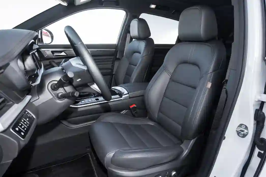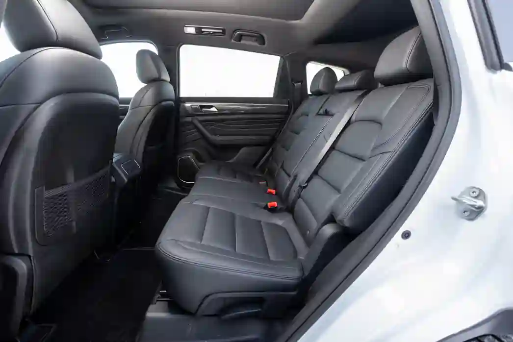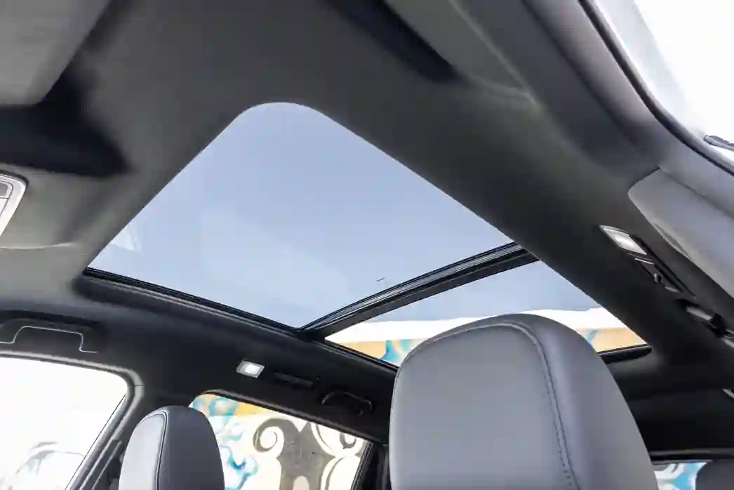 Чисто внешне кроссовер произвел впечатление. Массивный, с тисненым в 3D-манере богатым грилем. 20-е колеса, автоматическая светодиодная оптика с поворотной линзой, панорамная крыша, прикрытые дверями пороги и заводская тонировка задних стекол.