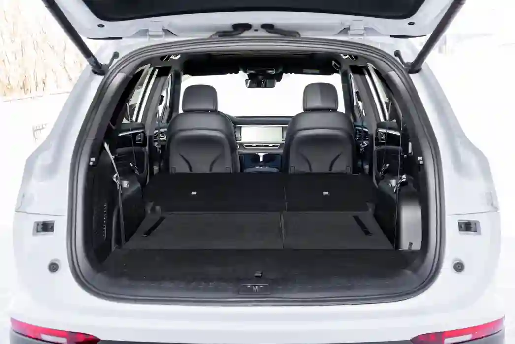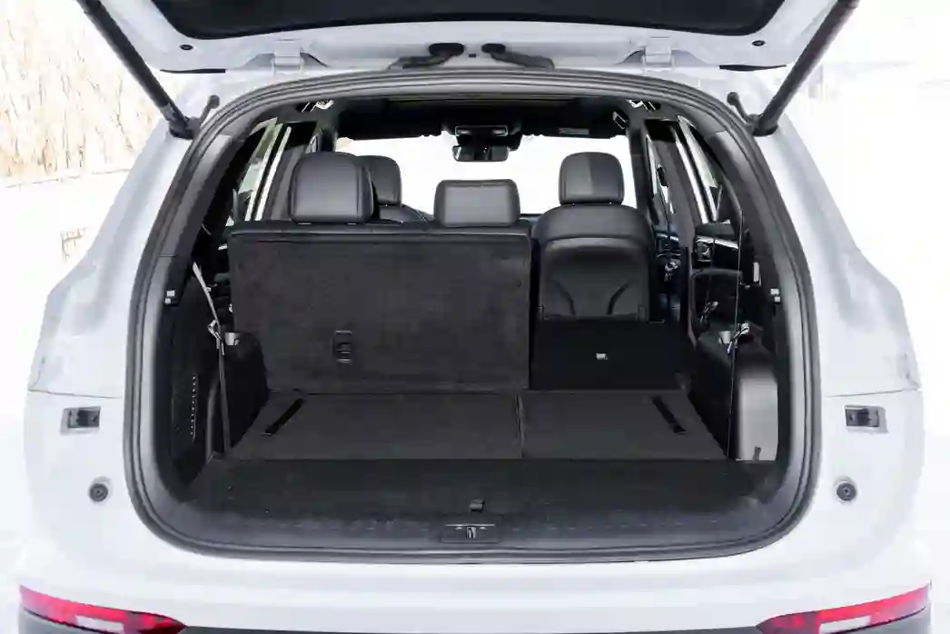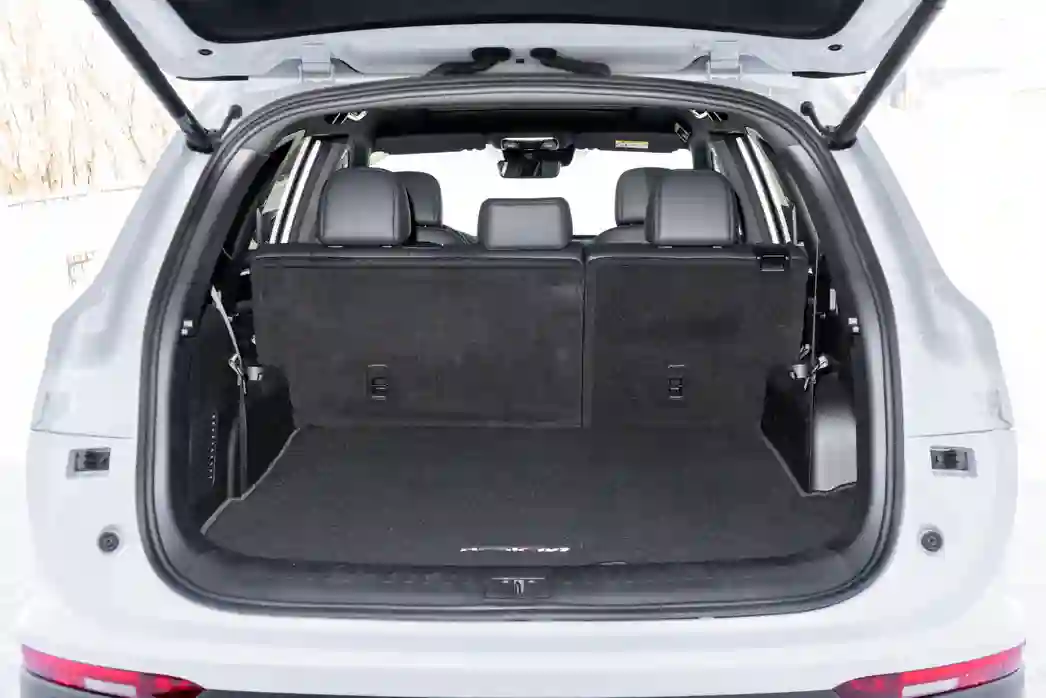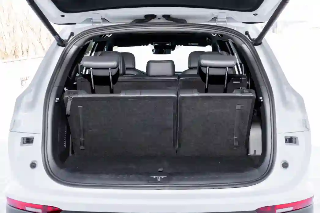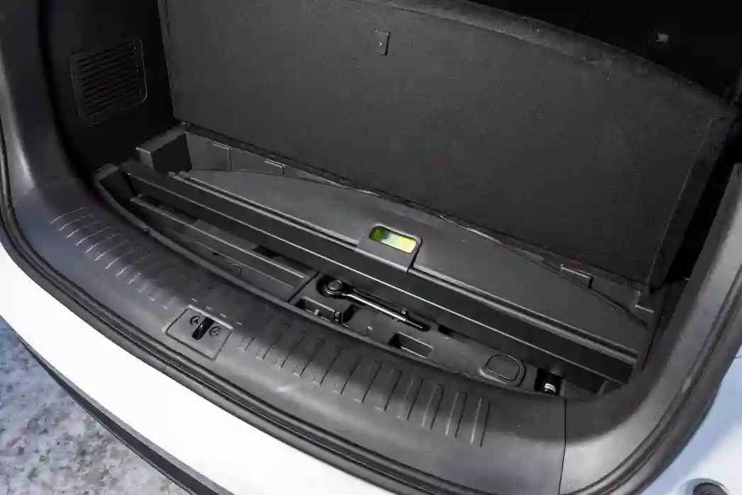 Внушает уважение и объемный багажник. В литро-цифровом выражении это 450/957/2215. Как видите, даже в семиместной конфигурации для багажа останется место. Но особенно впечатлила специальная ниша в подполе (запаска висит снизу кузова), куда можно спрятать рулонную полку-шторку. Удобно.
